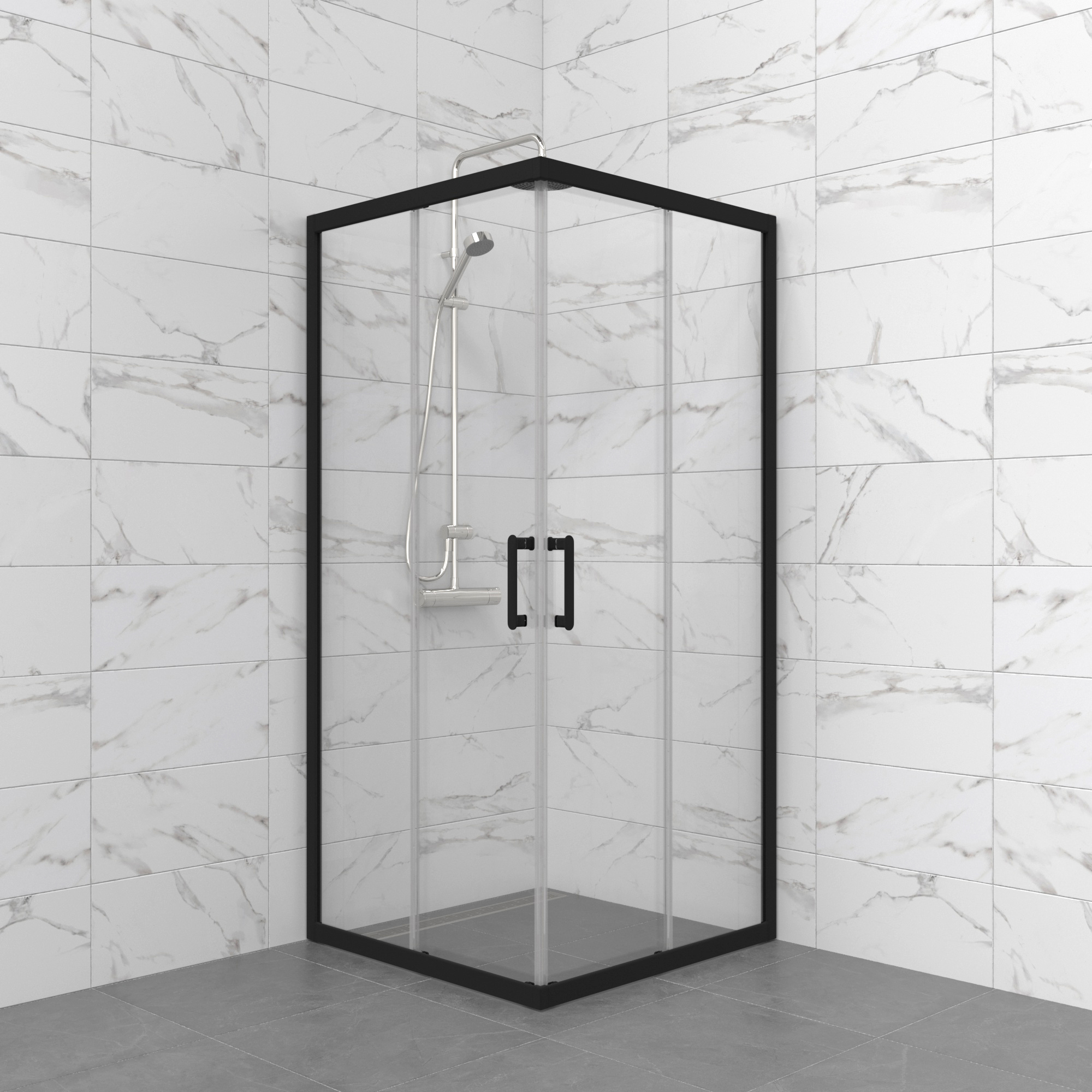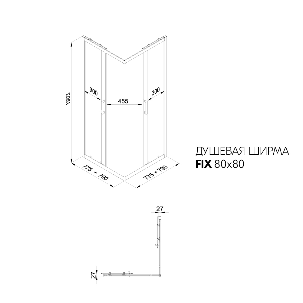 Главная Продукция Стеклянные изделия Душевые ширмы и ограждения Душевая ширма Fix 80×80 черная