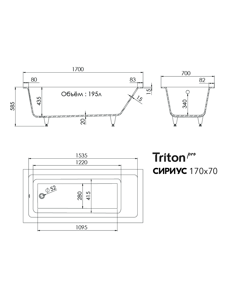 Ванна Сириус 170×70